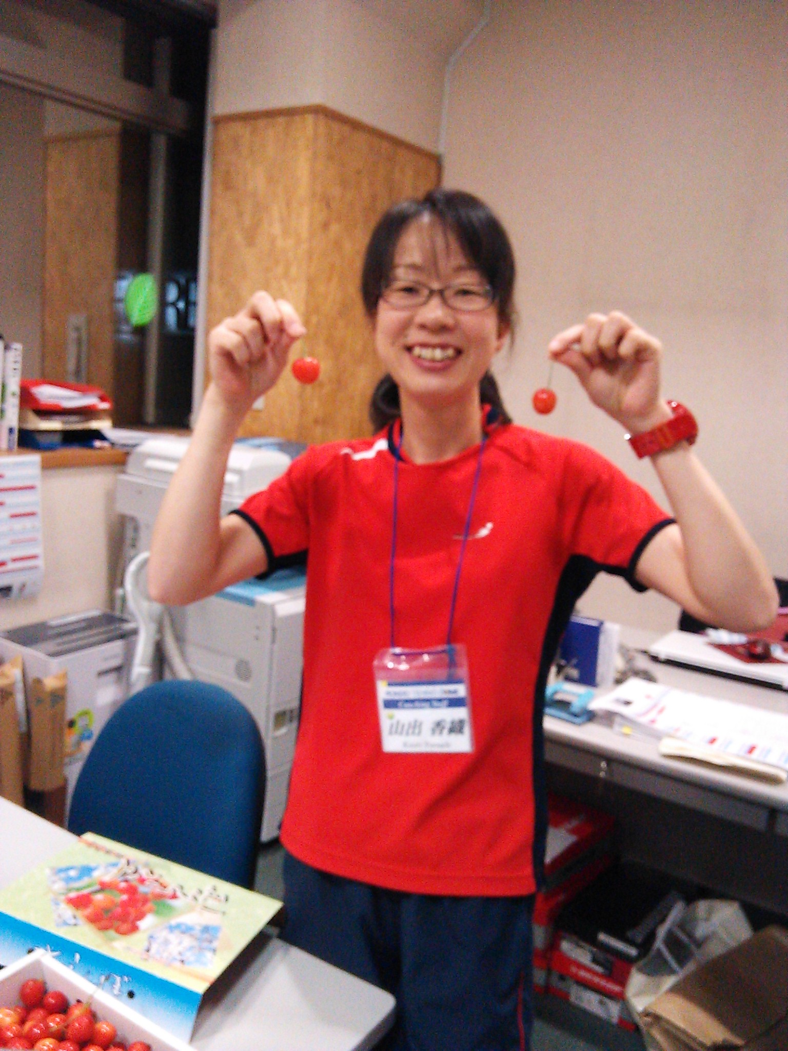 山出コーチとさくらんぼ!
