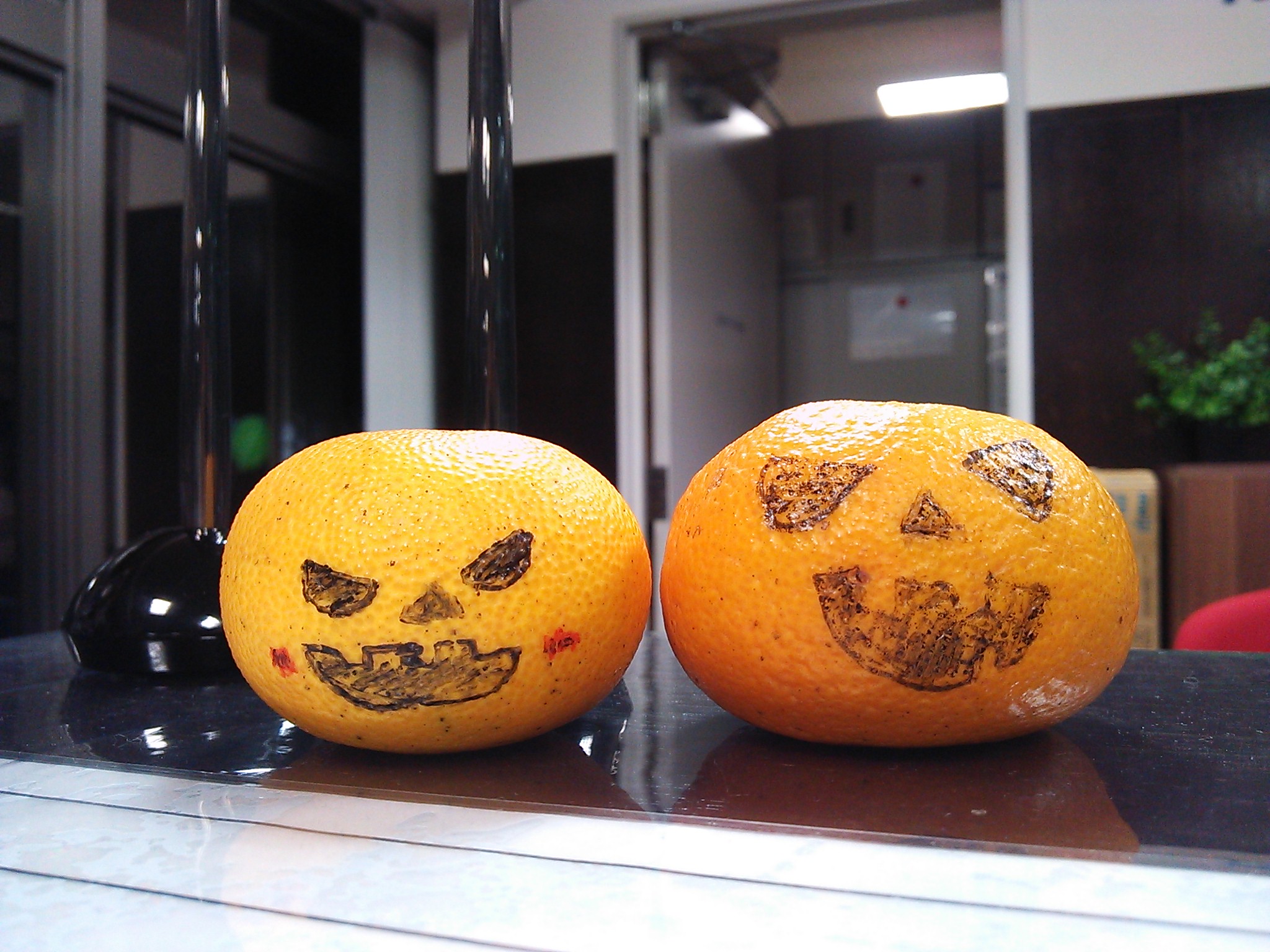みかんにハロウィンかぼちゃの顔が描いてありましたあああ!