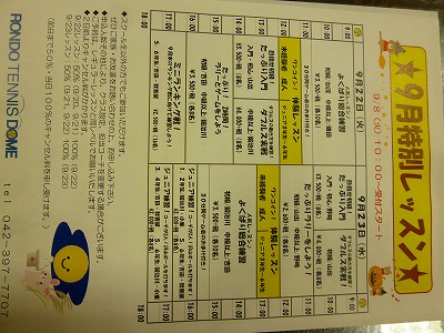 こんばんは★今日は、晴れたので気持ちいいです。やっと洗濯物が乾きますね9月22日(火)・9月23日(水)は、通常レッスンはお休みです。そして、「特別レッスン」を開催予定です!!会員の方も、会員でない方もどしどしご予約お待ちしております